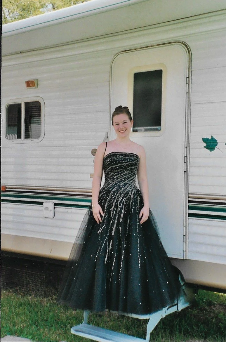 After 22 months and five professional remediations, we left everything behind—including our possessions—to start over. For 14 of those months, we lived in trailers in our yard and later a portable building. (Like a bad country song, one trailer developed mold as well.) My husband and I slept in the portable building while our three children slept in the second trailer—the one pictured here. This photo shows our oldest daughter standing on the trailer steps in her prom dress, parked outside our contaminated home—20 months after the mold explosion.